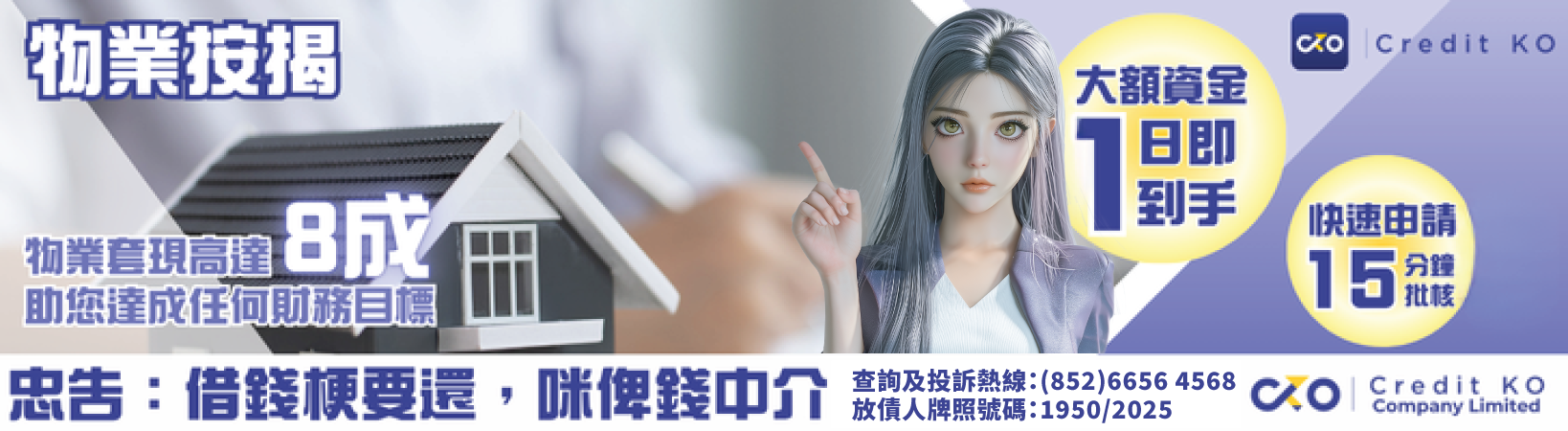 • Credit Ko:低利率、高批核率、24/7 即時批核,最適合需以物業資產套現或還清高息卡數的業主。