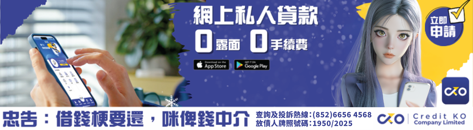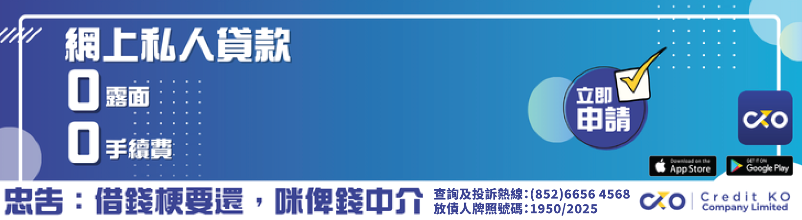 Credit Ko超低至約 0.99%約 HK$8,425高達 HK$32,000 現金回贈24/7 AI 極速批核,即時過數